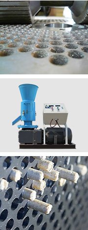 原料通過高溫,在壓輥和模盤的擠壓下,通過模盤上的孔,優(yōu)質(zhì)成型的顆粒從出料斗滾動而出
